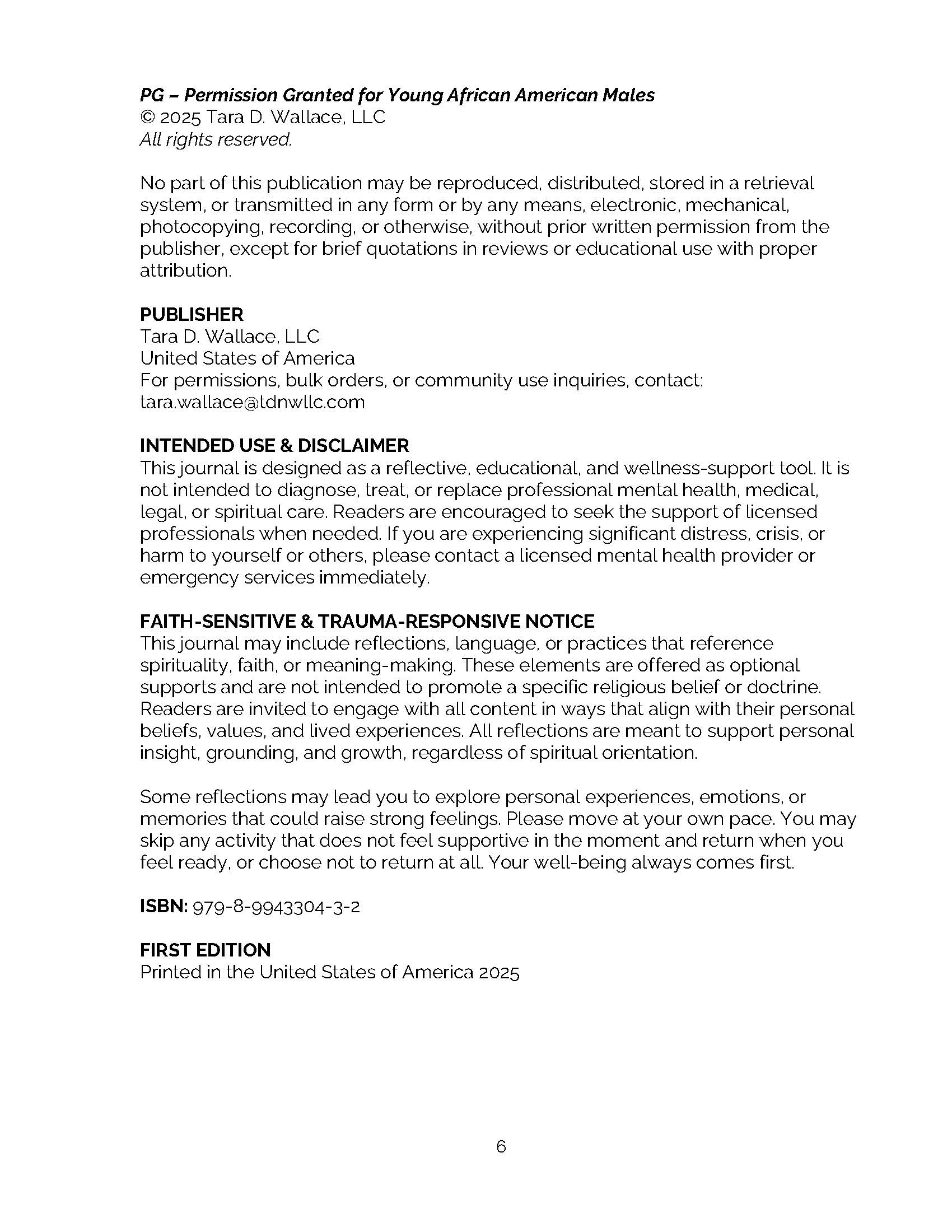 This journal supports emotional literacy and healthy connections by helping young African American males name their feelings, understand their inner experiences, and develop language for care and self-expression. Reflection prompts and guided activities promote curiosity, grounding, and confidence without fear or judgment.